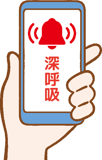 スマホの通知などに「深呼吸の時間」とメッセージを表示