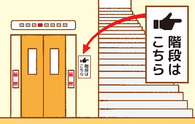 「階段はこちら→」の表示を出す