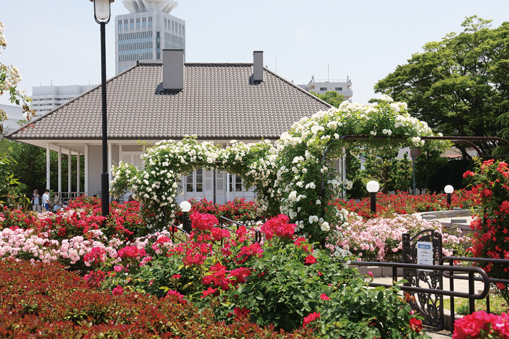 横須賀駅を出て、ヴェルニー公園に向かって歩こう。駅のすぐ近くに位置するヴェルニー公園には約130種類1,300株のバラが植えられており、春と秋にバラが楽しめる。春バラは例年4月下旬から5月下旬頃が見頃だ。園内のミュージアム、ティボディエ邸にも立ち寄ってみよう。